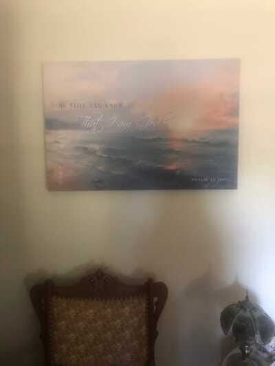 I enjoy this piece of Scripture art that now hangs in our grown daughters bedroom and is used for our grandchildren when they visitA warm and inviting peace bringing picture.Thank you